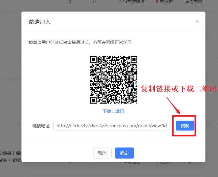 (3)邀请加入班级:使用邀请链接进入的用户可申请加入班级,后台审核通过,可免费加入,无需购买。