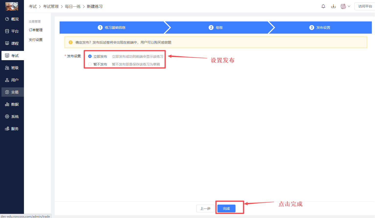 步骤2:填写练习的基础信息,点击【下一步】,进入组题
