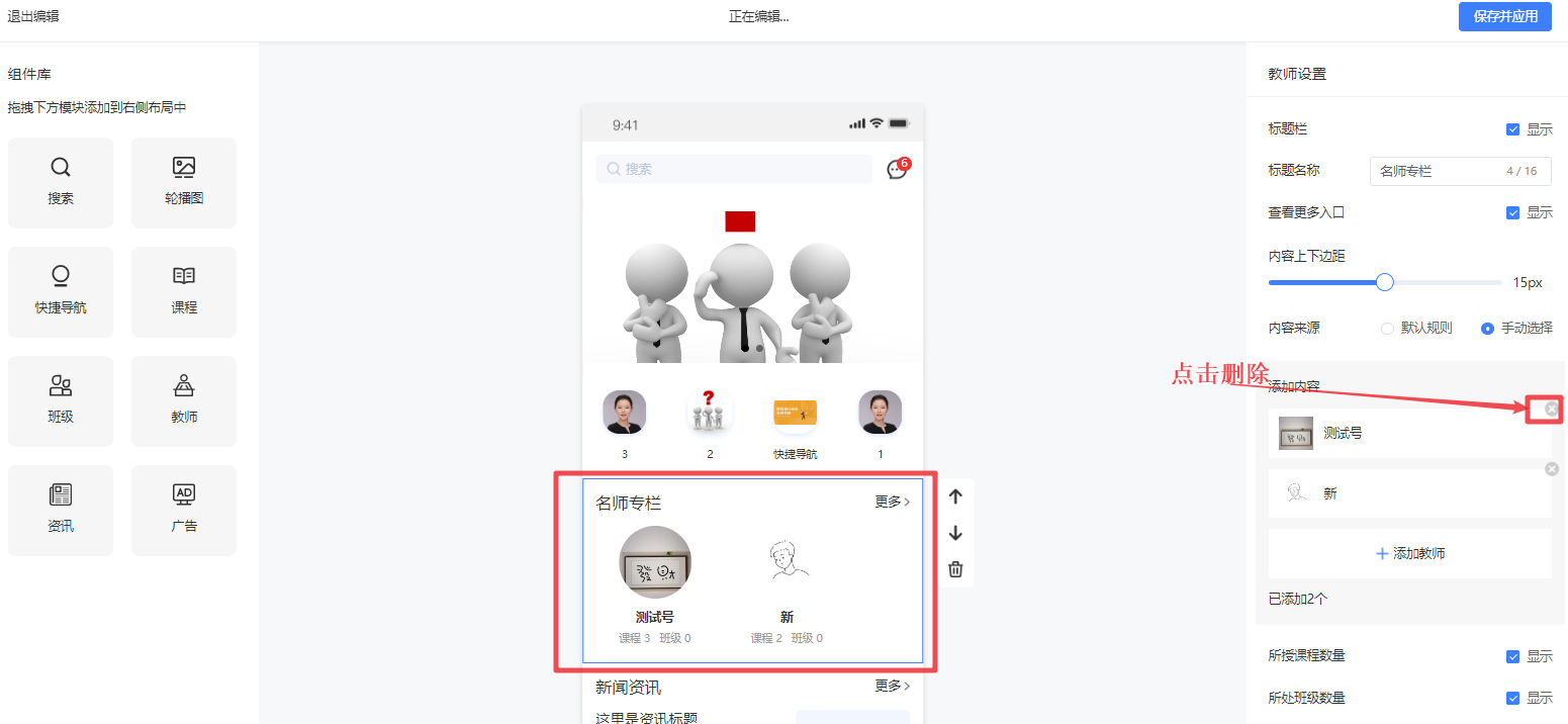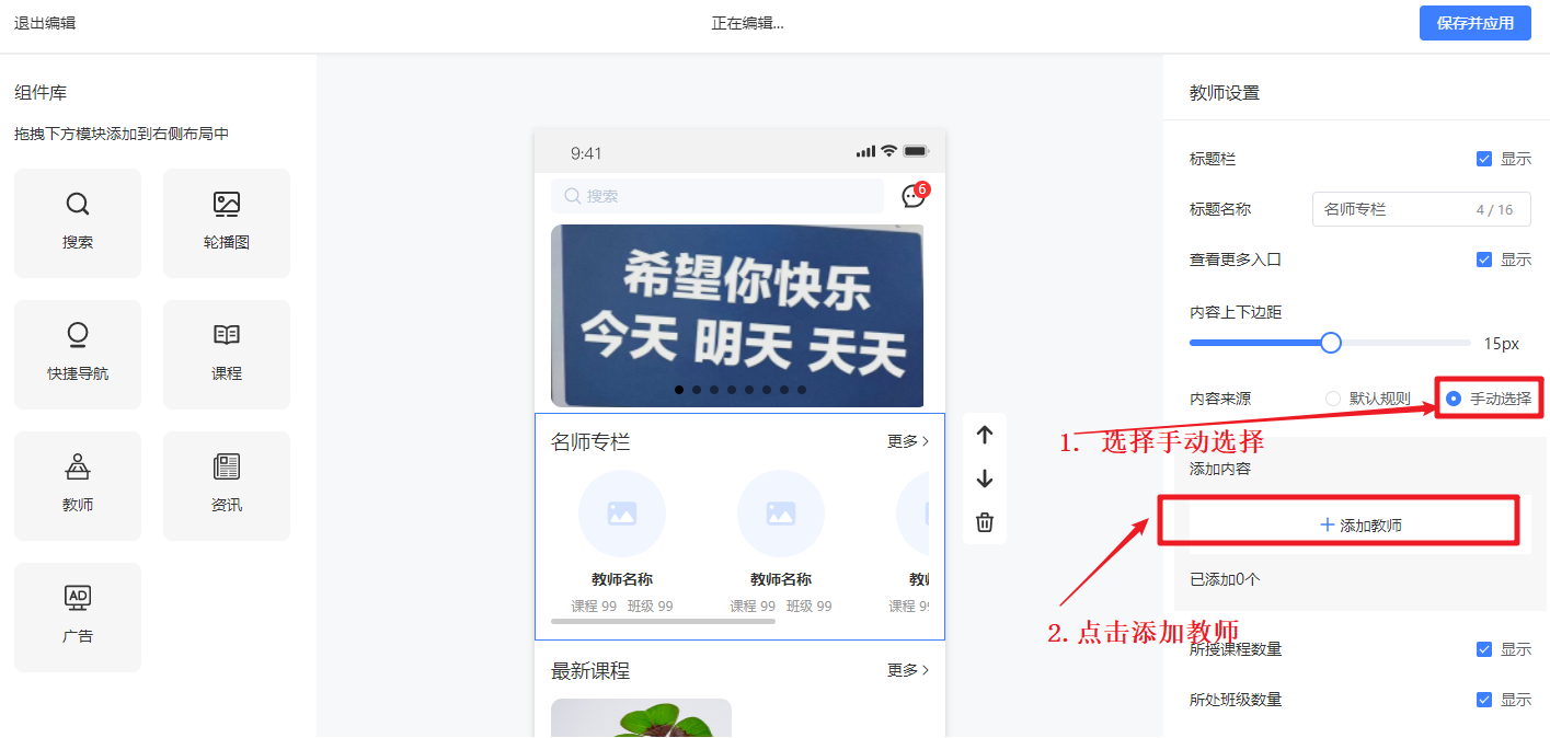 - 教师组件内容设置